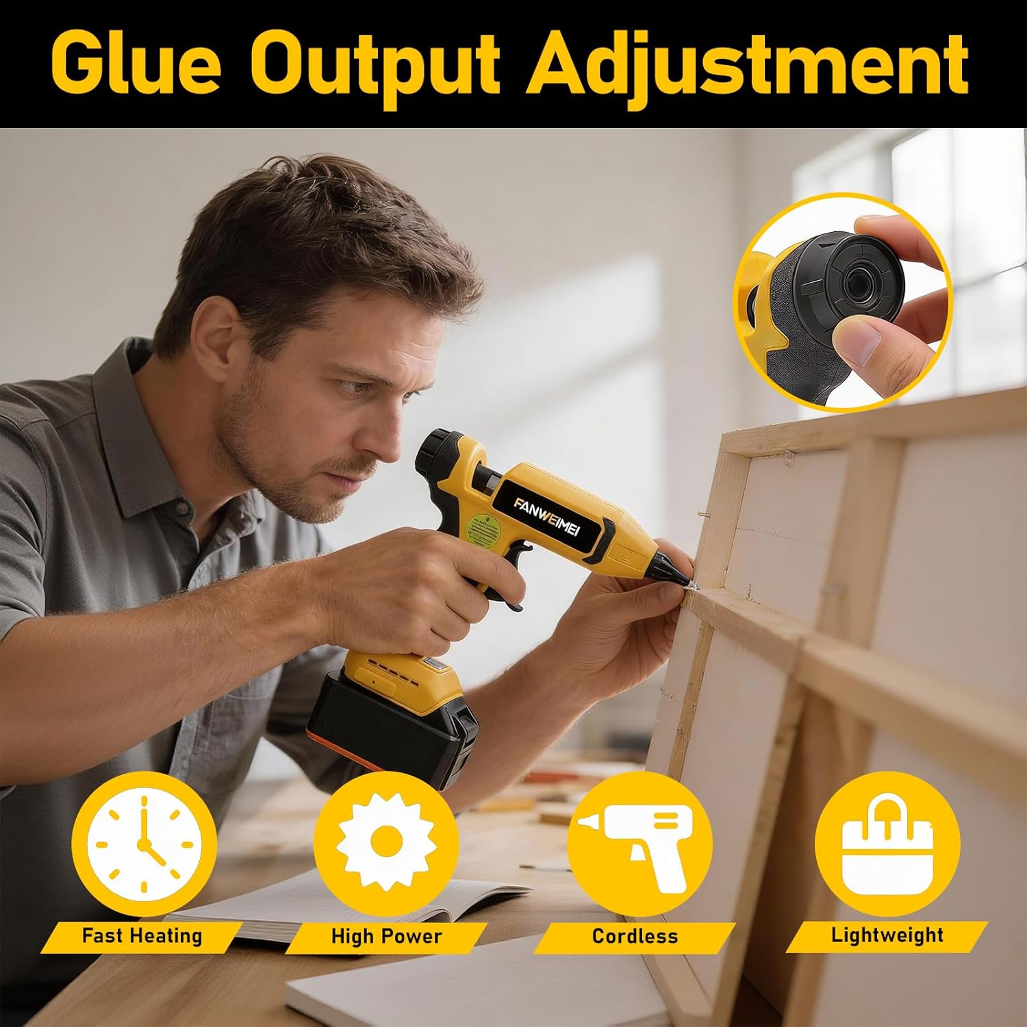 • Cordless & Ergonomic Handling:Designed for freedom of movement, this cordless glue gun lets you work anywhere without being tied to an outlet—ideal for projects that require mobility or quick completion. Its ergonomically shaped rubber handle ensures a comfortable, secure grip even during extended use.